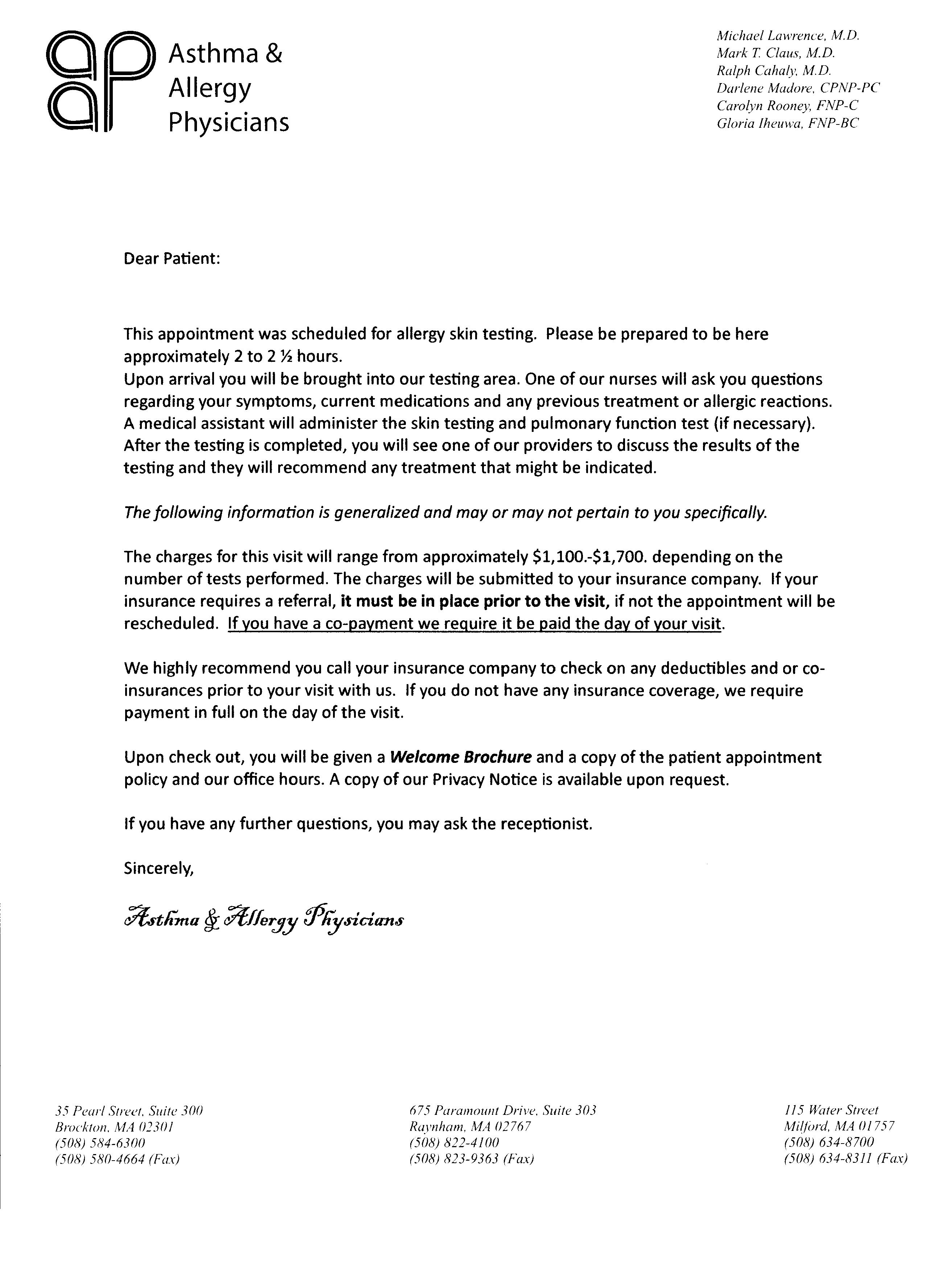 Skin Testing Directions